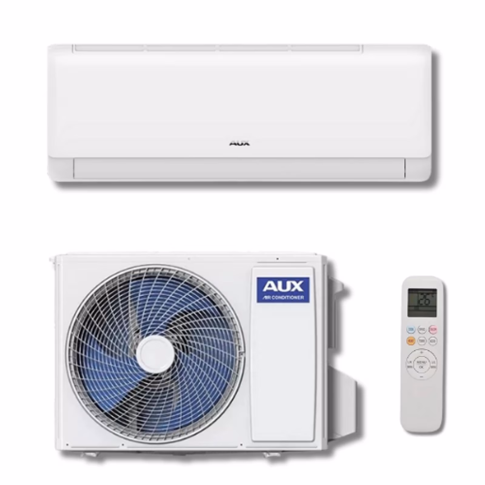 Az AUX Q SMART PLUS beltéri egysége nagyjából hétszázhatvanegy milliméter széles, kétszázkilencvenöt milliméter magas és körülbelül kétszáz milliméter mély, így kényelmesen elfér egy átlagos szoba ajtaja vagy ablaka fölött. A kültéri egység mérete megközelítőleg hétszáznyolc milliméter szélesség, ötszázharminc milliméter magasság és kétszáznyolcvankilenc milliméter mélység, ami szabványos oldalfali konzolon vagy talajon álló tartón is gond nélkül elhelyezhető.