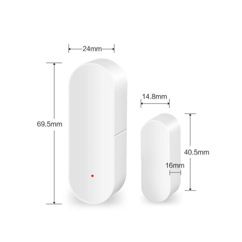 Nyitásérzékelő – Google Assistant és Amazon Alexa kompatibilitás, csatlakozási mód: WiFi, ajtóra vagy ablakra szerelhető, 0,3 m hatótávolság, önállóan működő egység, támogatott operációs rendszer: Android és iOS,