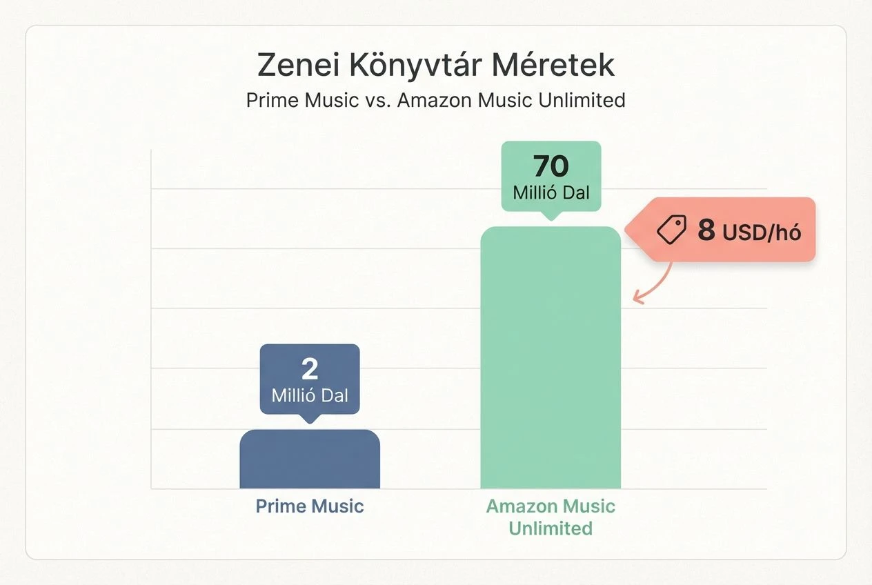 - Spotify csatlakoztatásához és több eszközös használathoz Spotify Premium előfizetés kell. Amazon Music Unlimited több mint 70 millió dalt kínál, reklámmentesen, akár 8 USD/hó áron Prime tagoknak.